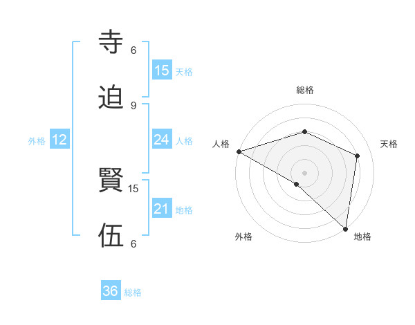 寺迫 賢伍さんの天格は15画の4点!