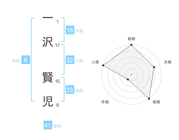 一沢 賢児さんを姓名の画数から五運を鑑定