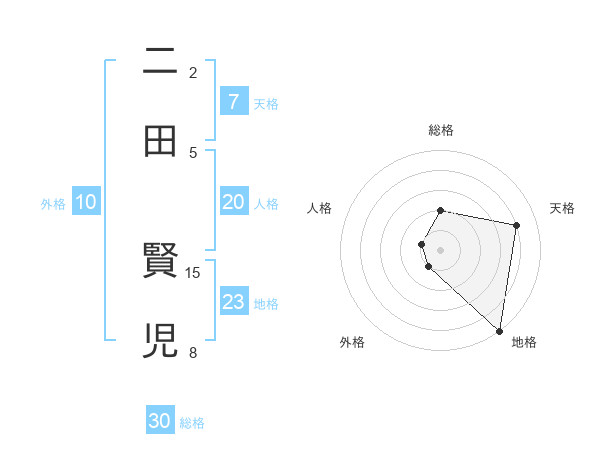 二田 賢児さんの総格は30画の2点!