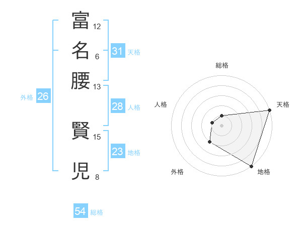 富名腰 賢児さんの天格は31画の5点!