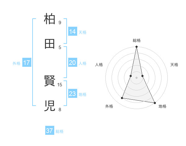柏田 賢児さんの総格は37画の5点!