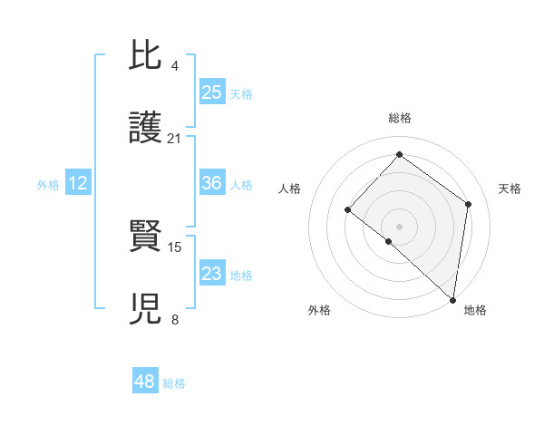 比護 賢児さんの総格は48画の4点!