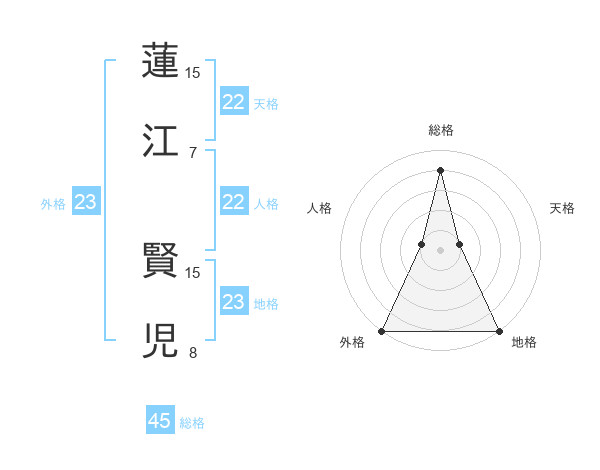 蓮江 賢児さんの総格は45画の4点!