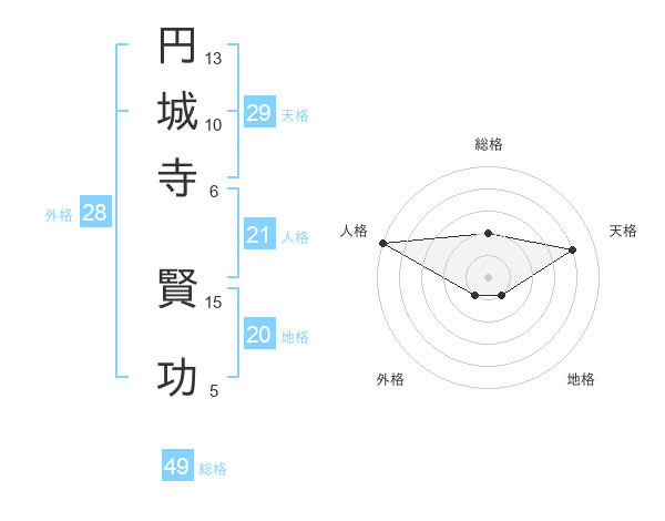 円城寺 賢功さんの天格は29画の4点!