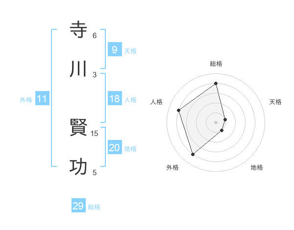 寺川 賢功さんを姓名の画数から五運を鑑定