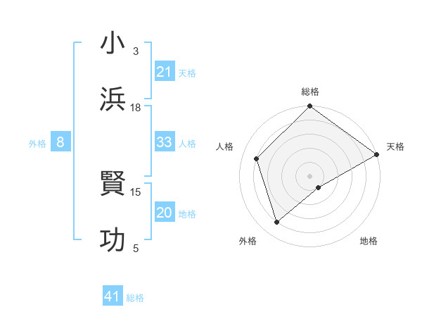小浜 賢功さんを姓名の画数から五運を鑑定