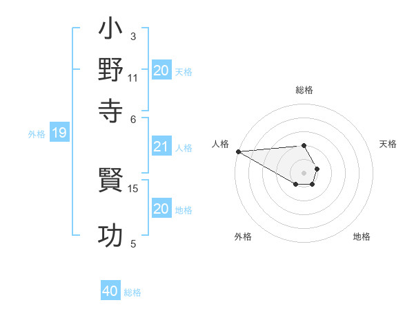 小野寺 賢功さんの天格は20画の1点!