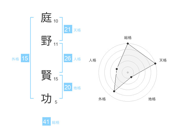 庭野 賢功さんの外格は15画の4点!