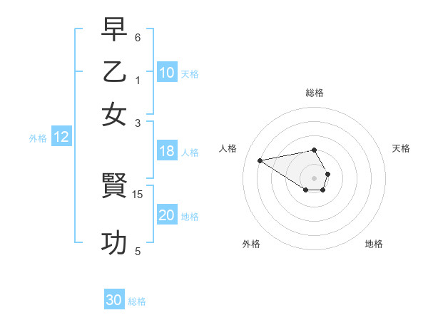 早乙女 賢功さんを姓名の画数から五運を鑑定