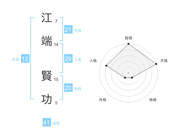 江端 賢功さんの天格は21画の5点!