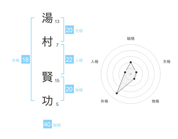 湯村 賢功さんを姓名の画数から五運を鑑定