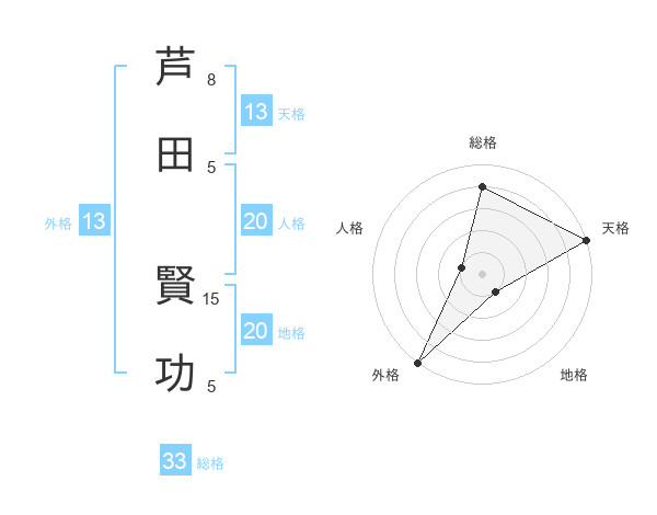 芦田 賢功さんの総格は33画の4点!