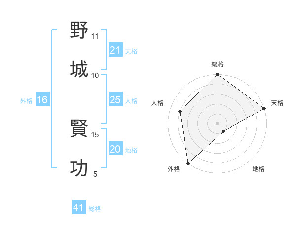野城 賢功さんの天格は21画の5点!