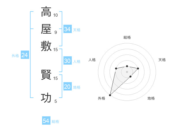 高屋敷 賢功さんの総格は54画の1点!