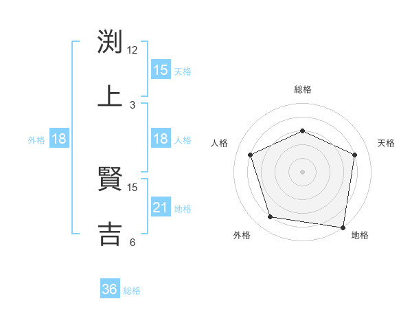 渕上 賢吉さんの総格は36画の3点!
