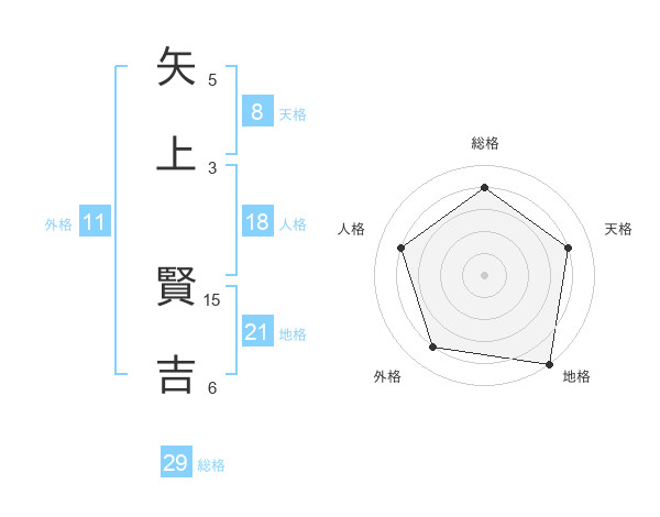 矢上 賢吉さんを姓名の画数から五運を鑑定