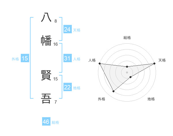 八幡 賢吾さんの外格は15画の4点!