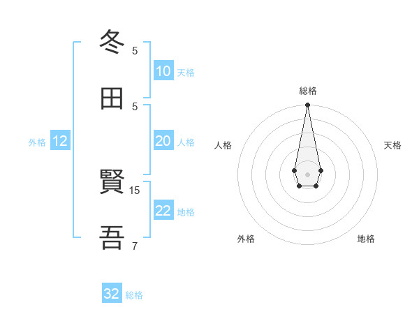 冬田 賢吾さんを姓名の画数から五運を鑑定