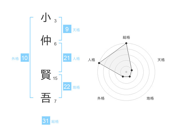 小仲 賢吾さんの総格は31画の5点!