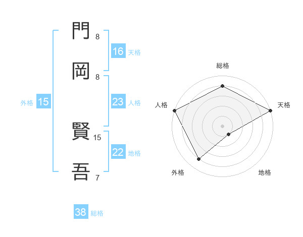 門岡 賢吾さんの総格は38画の4点!