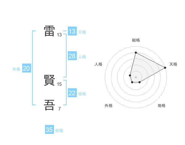 雷 賢吾さんを姓名の画数から五運を鑑定