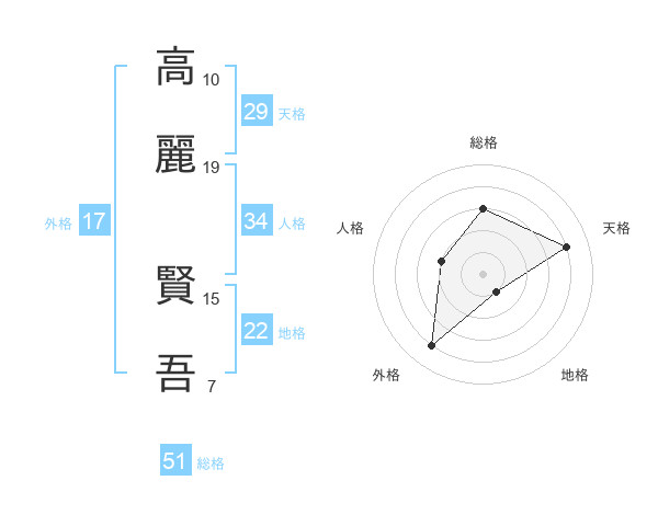 高麗 賢吾さんの総格は51画の3点!