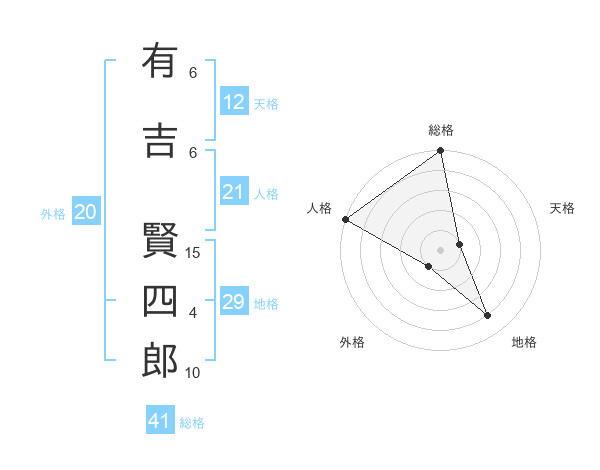 有吉 賢四郎さんを姓名の画数から五運を鑑定