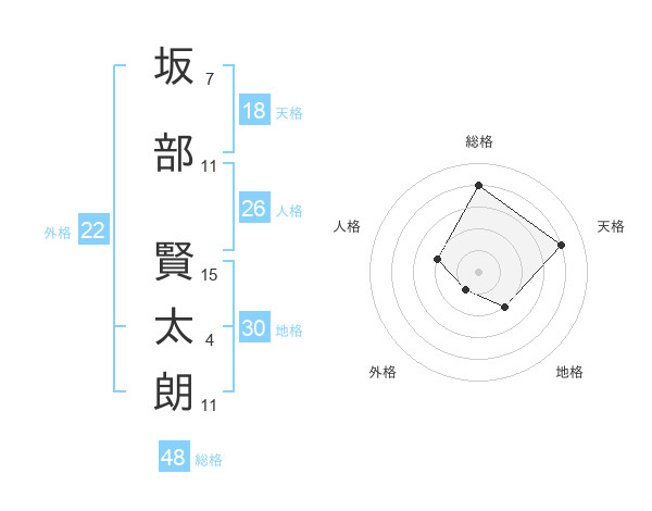 坂部 賢太朗さんを姓名の画数から五運を鑑定