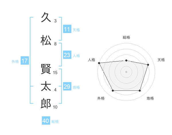 久松 賢太郎さんの天格は11画の4点!