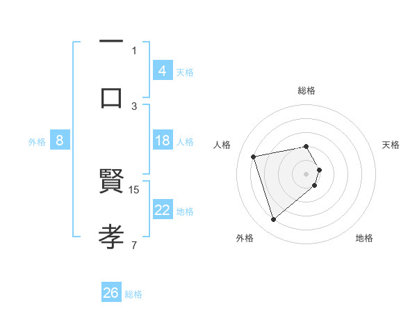 一口 賢孝さんの総格は26画の2点!