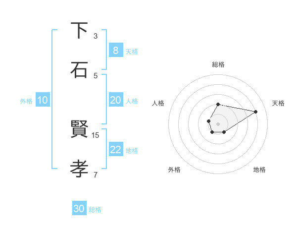下石 賢孝さんを姓名の画数から五運を鑑定