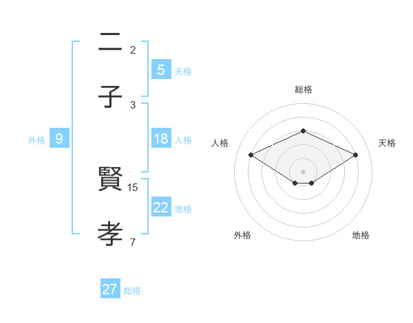 二子 賢孝さんの総格は27画の3点!
