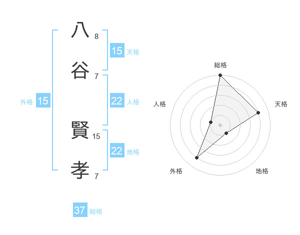 八谷 賢孝さんを姓名の画数から五運を鑑定