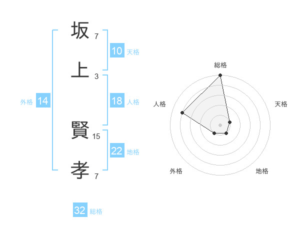 坂上 賢孝さんの総格は32画の5点!