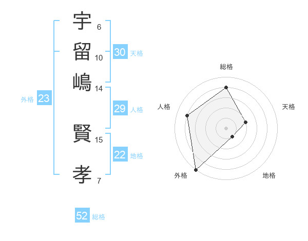 宇留嶋 賢孝さんを姓名の画数から五運を鑑定