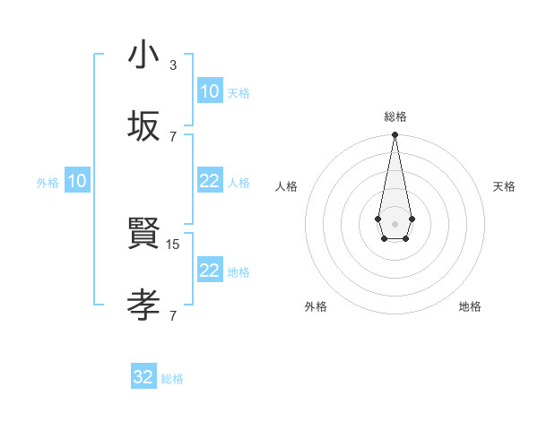 小坂 賢孝さんを姓名の画数から五運を鑑定