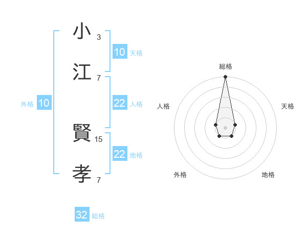 小江 賢孝さんを姓名の画数から五運を鑑定