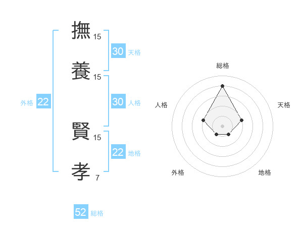 撫養 賢孝さんの総格は52画の4点!