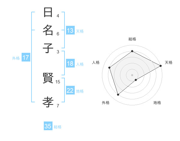 日名子 賢孝さんを姓名の画数から五運を鑑定
