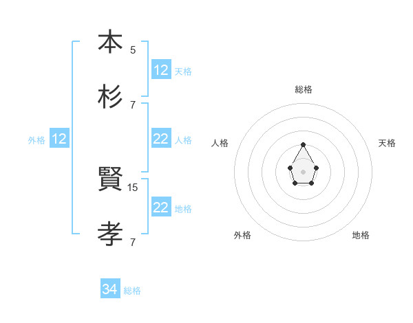 本杉 賢孝さんの天格は12画の1点!
