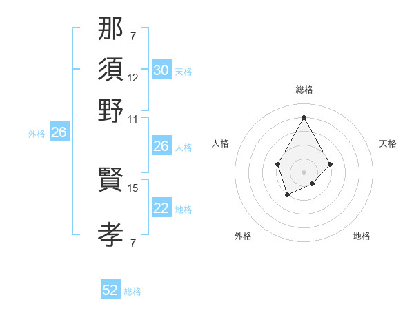 那須野 賢孝さんを姓名の画数から五運を鑑定