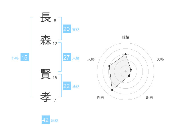 長森 賢孝さんを姓名の画数から五運を鑑定