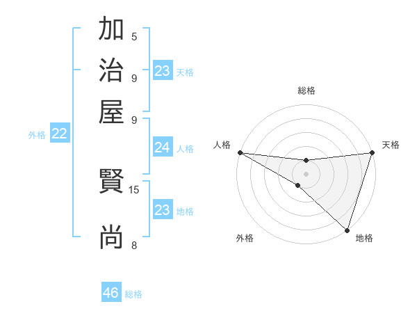 加治屋 賢尚さんを姓名の画数から五運を鑑定
