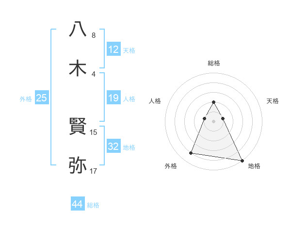 八木 賢弥さんを姓名の画数から五運を鑑定