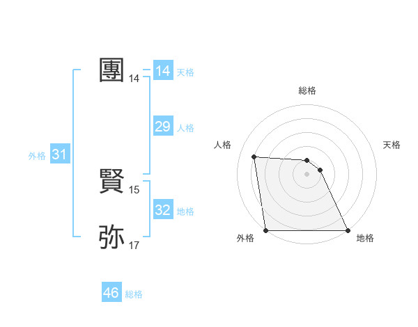 團 賢弥さんの外格は31画の5点!
