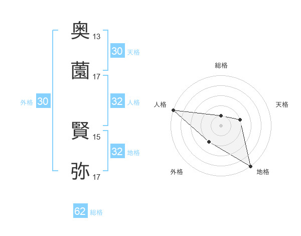 奥薗 賢弥さんを姓名の画数から五運を鑑定