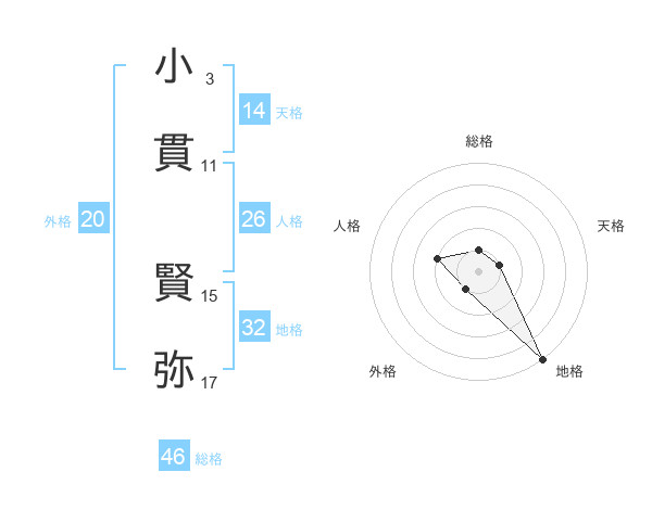 小貫 賢弥さんの天格は14画の1点!