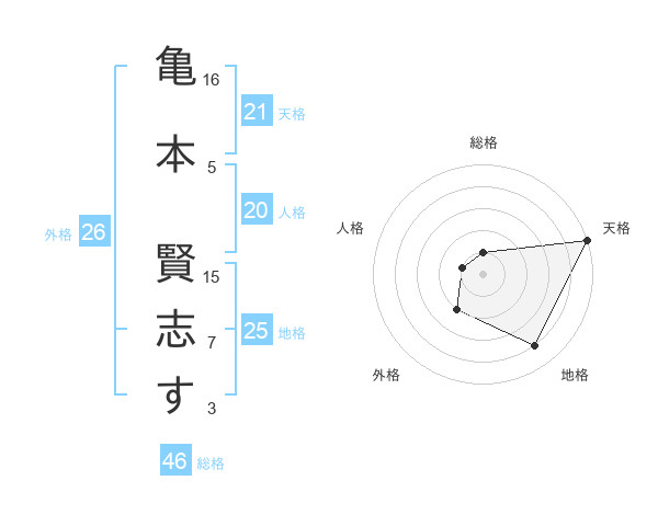 亀本 賢志すさんの天格は21画の5点!