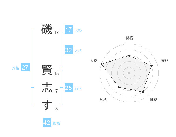 磯 賢志すさんの天格は17画の4点!