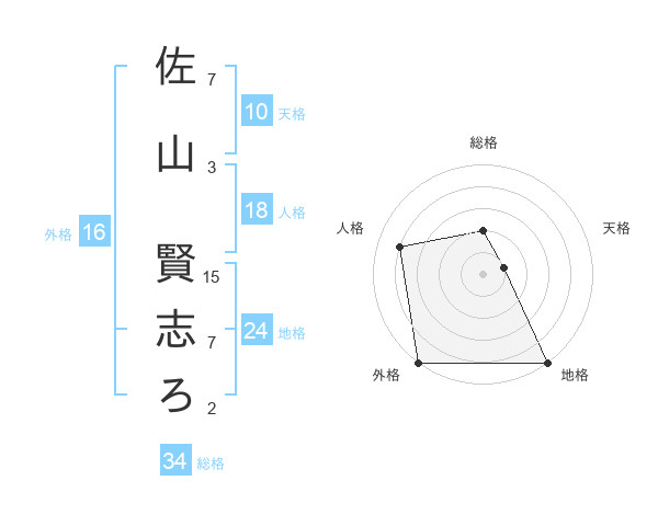 佐山 賢志ろさんを姓名の画数から五運を鑑定